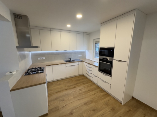 Rekonstrukce v Dolním Bousově je ukázkou toho, jak může vypadat kvalitně navržená kuchyně na míru v rámci kompletní rekonstrukce domu. Spojení designu, funkčnosti a precizního provedení vytváří prostor, který odpovídá současným nárokům na moderní bydlení.