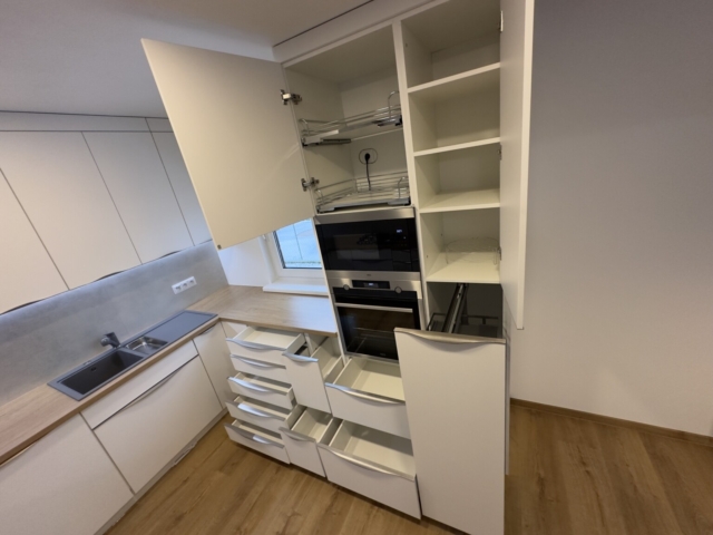 Díky tomuto přístupu vznikla kuchyň na míru, která je plně přizpůsobená potřebám klienta i konkrétnímu prostoru.