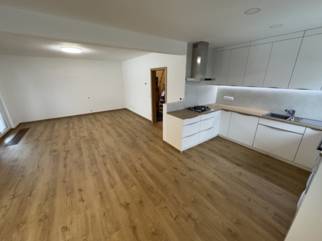 V období od října do listopadu 2025 jsme realizovali kompletní rekonstrukci přízemí rodinného domu v Dolním Bousově. Hlavním cílem projektu bylo vytvořit moderní a funkční obytný prostor s důrazem na kuchyni na míru, která je propojená s obývacím pokojem a tvoří přirozené centrum domácnosti.