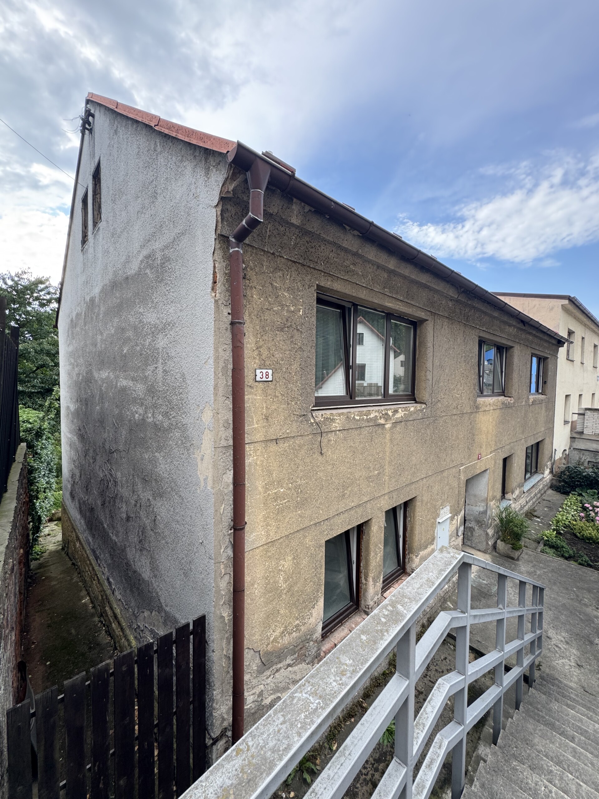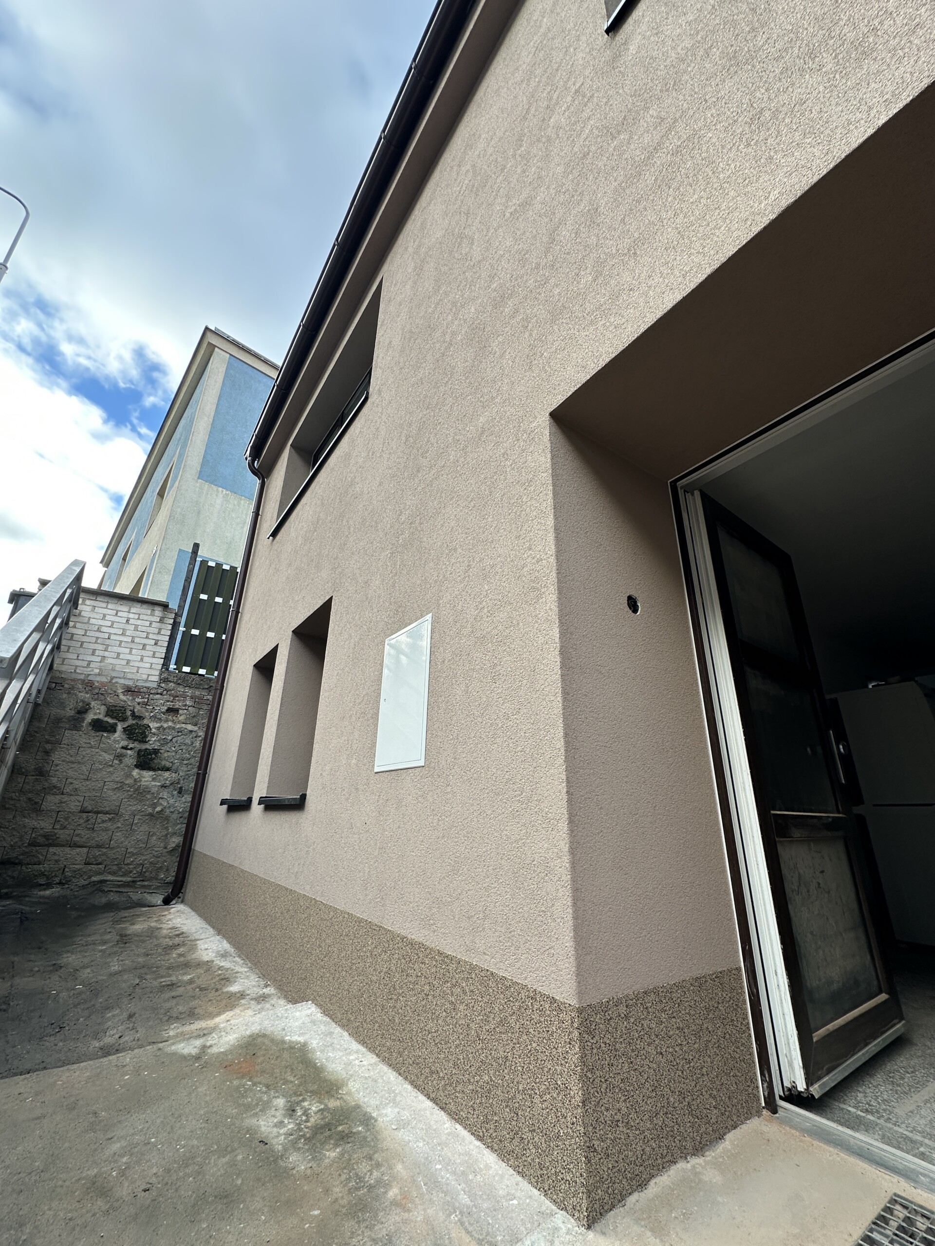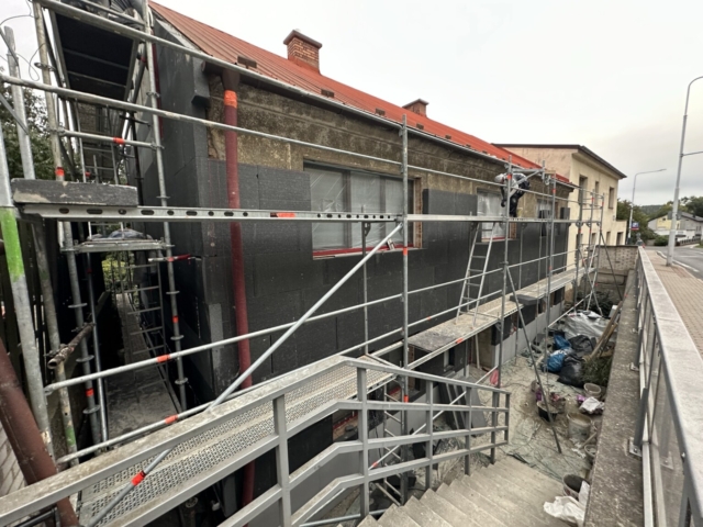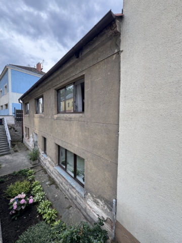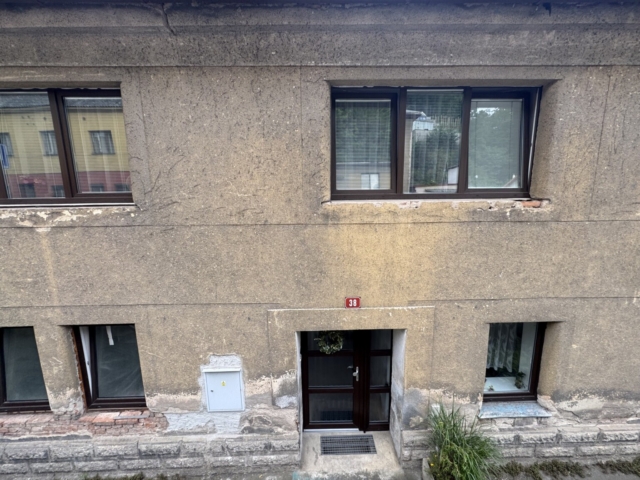 V roce 2025 jsme realizovali zateplení fasády rodinného domu v Mladé Boleslavi – Debři, konkrétně na adrese Josefodolská 38. Objekt se nachází pod úrovní okolního terénu, přičemž komunikace vedoucí kolem domu je výše než samotná stavba. Tento faktor dlouhodobě způsoboval zvýšené zatížení vlhkostí a zhoršené tepelně-izolační vlastnosti obvodového zdiva.