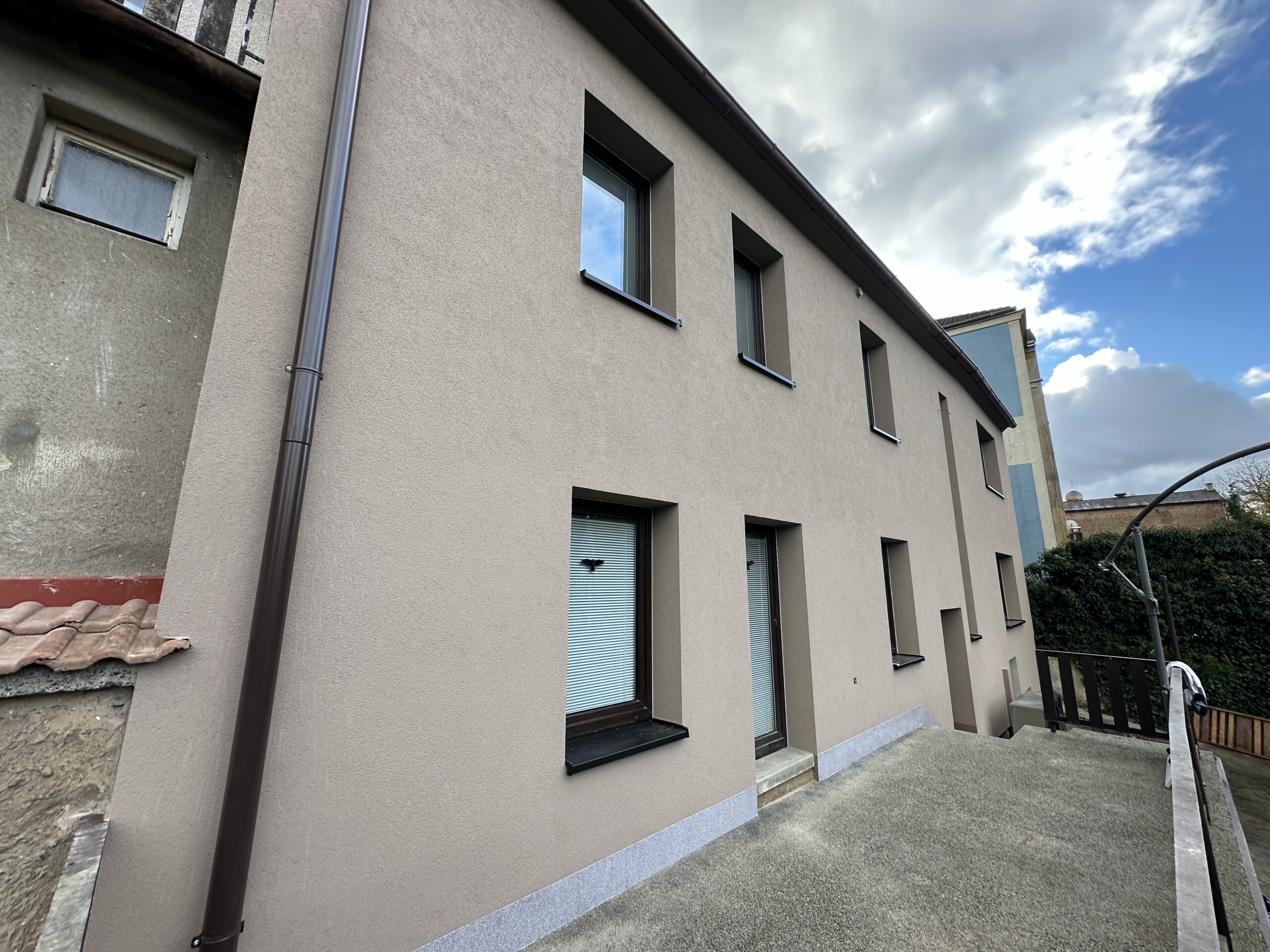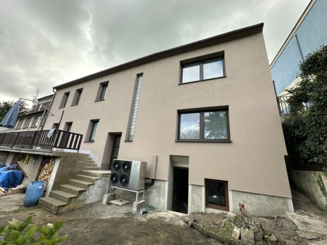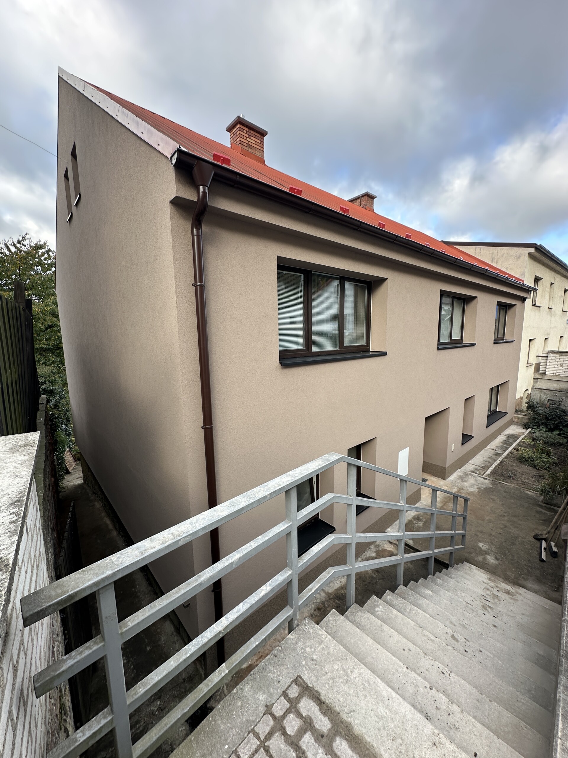Majitelé zvolili světle béžovou barvu fasády, která domu dodala čistý, elegantní a nadčasový vzhled. Světlý odstín zároveň opticky prosvětlil objekt a sjednotil jeho celkový charakter s okolní zástavbou.