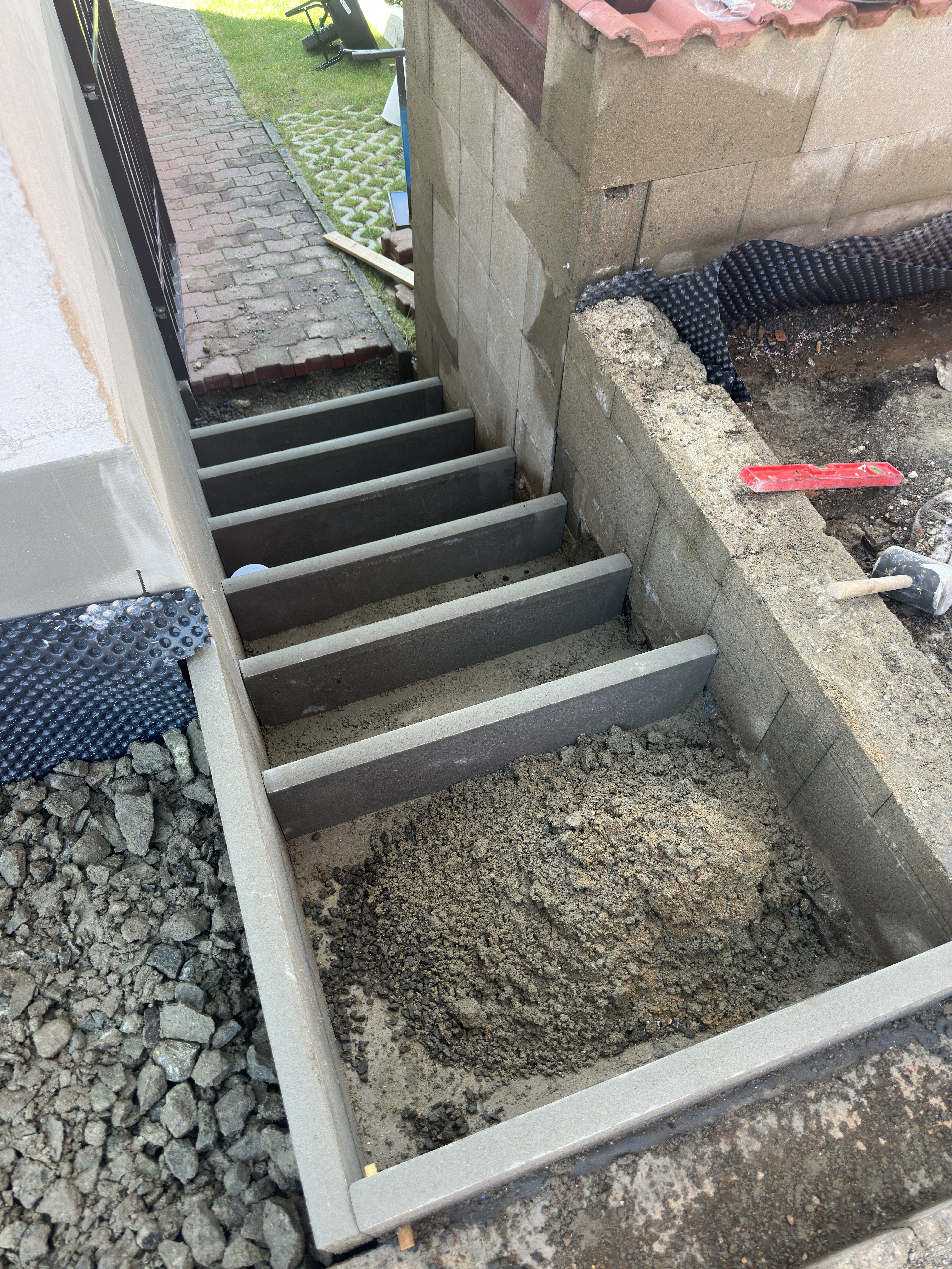 Realizace v Kosmonosech je příkladem komplexní stavební služby – od přípravy podkladu, přes pokládku zámkové dlažby, až po opravu soklu a hydroizolaci. Každý krok byl proveden s důrazem na kvalitu, funkčnost a dlouhodobou odolnost.