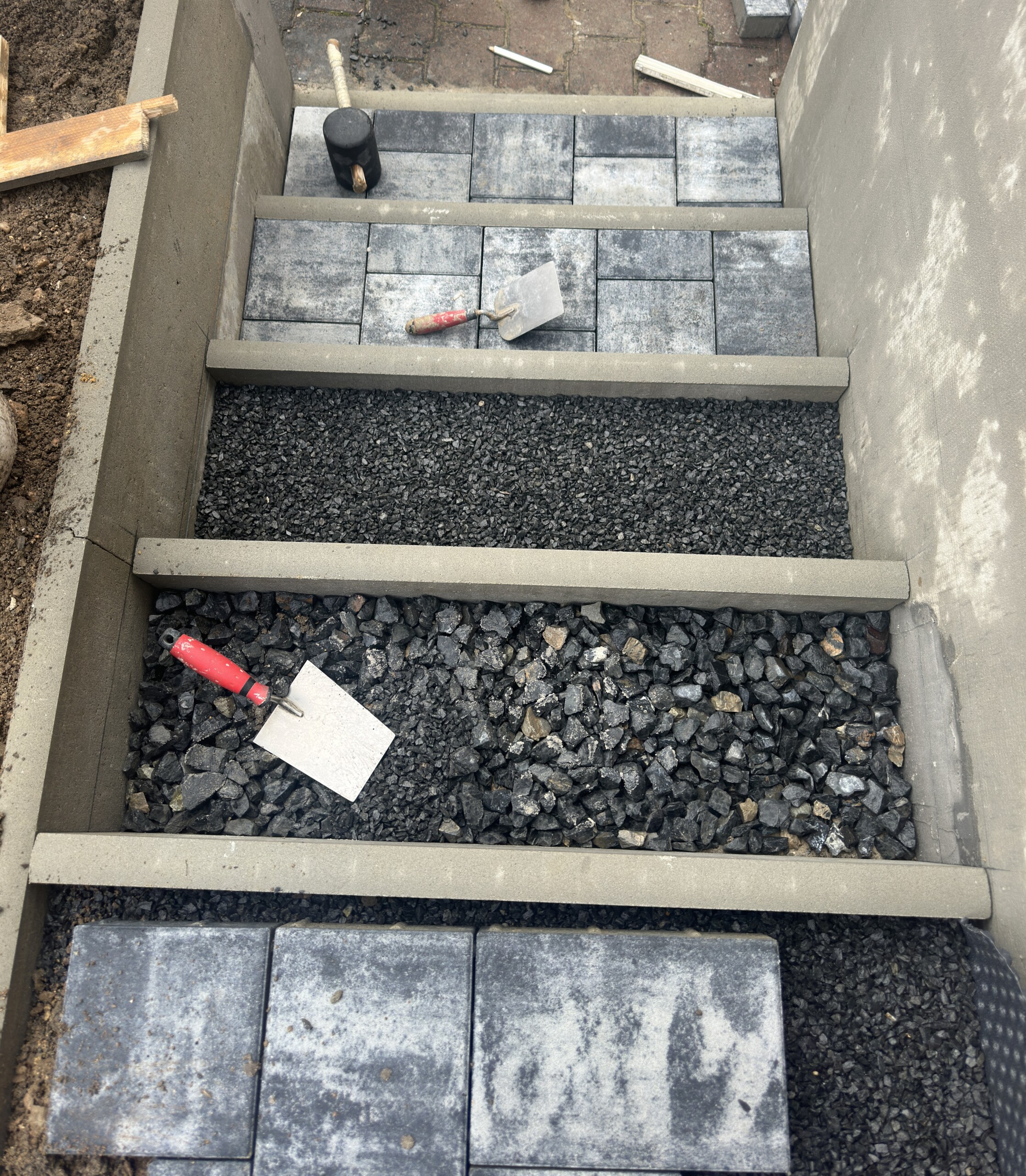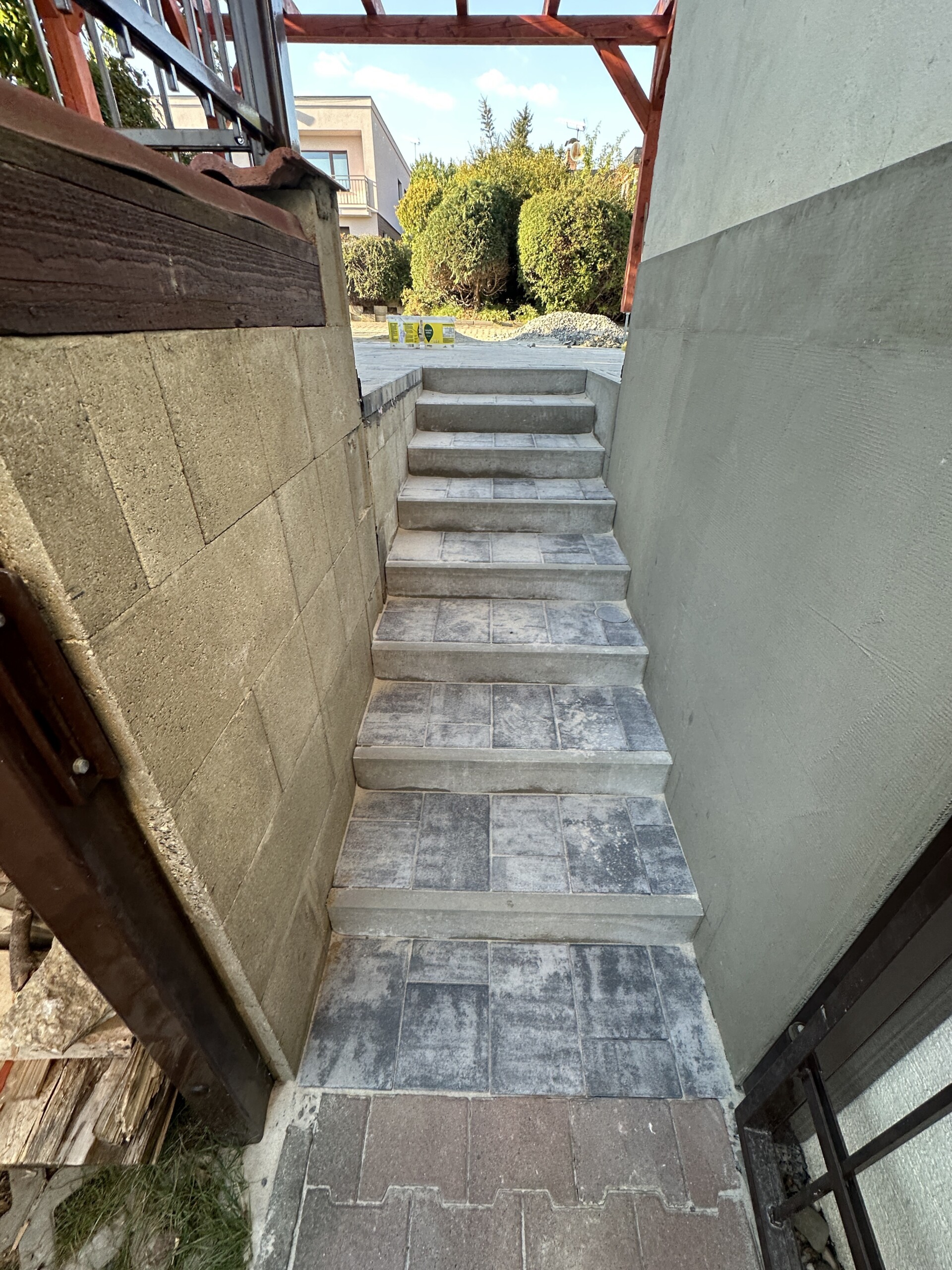 Součástí projektu byla také výstavba nových vstupních schodů, které plynule navazují na novou dlažbu. Konstrukce byla provedena s ohledem na stabilitu, bezpečnost a dlouhou životnost.