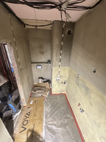 Součástí realizace byla kompletní výměna rozvodů vody, odpadů, elektroinstalace i topení, což zajistilo nejen moderní vzhled, ale i dlouhodobou spolehlivost.